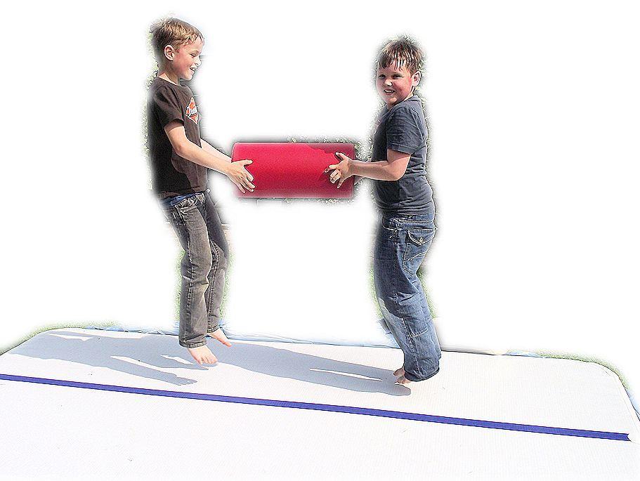 der Härtegrad und die elastischen Eigenschaften der trampolin.turnmatte kann durch die hineingepumpte Luftmenge sehr gezielt gesteuert werden: für Kleinkinder weicher und für Erwachsene strammer